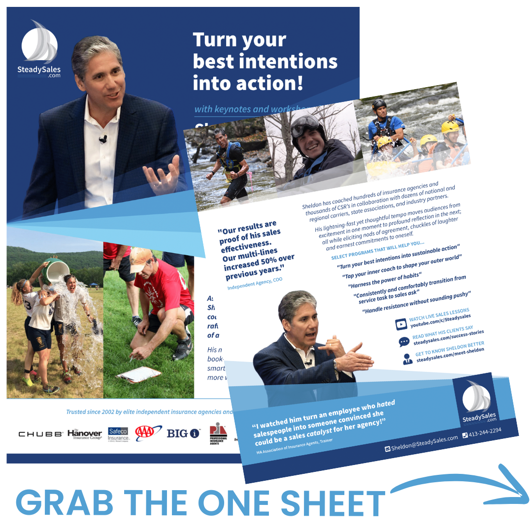 As a living laboratory for his own study, Sheldon has spent thousands of hours coaching soldiers, skiers, white water rafters, insurance agents, and athletes of all ages around the world. His masterful blend of behavioral science book-smarts with industry specific streetsmarts helps insurance professionals sell more while they serve better.
